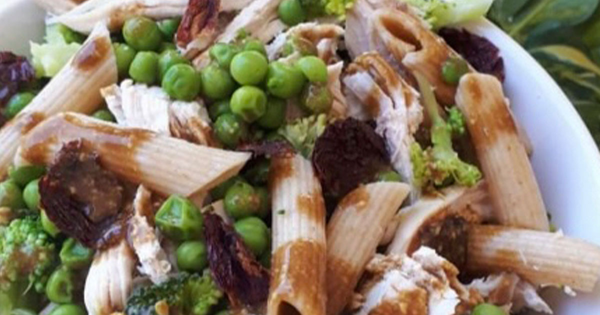 Αρχικά βράζουμε τις πέννες και τις αφήνουμε στην άκρη να κρυώσουν. Παράλληλα σε ένα τηγάνι βάζουμε το κοτόπουλο που έχουμε κόψει σε μικρά κομμάτια, ρίχνουμε λίγο νερό και τα μπαχαρικά και το αφήνουμε να ψηθεί. Σε ένα άλλο κατσαρολάκι βράζουμε τον αρακά για 20-30 λεπτά. Αφού έχουμε μαγειρέψει τα βασικά μας υλικά τα ρίχνουμε σε ένα βαθύ μπολ μαζί με το μπρόκολο (μπορούμε να το χρησιμοποιήσουμε και ωμό), ρίχνουμε αλάτι –πιπέρι, το βαλσάμικο, το ελαιόλαδο και ανακατεύουμε καλά. Τέλος, σερβίρουμε την μακαρονοσαλάτα μας.