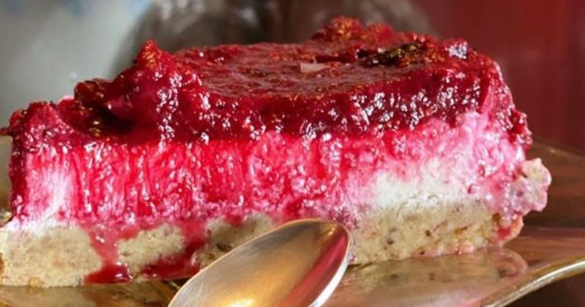 Σε ένα κατσαρολάκι σε χαμηλή φωτιά ρίχνουμε το ½ φλ. στέβια, τα σμέουρα και το αφήνουμε να βράσει για 10 λεπτά. Αφού κρυώσει το ρίχνουμε πάνω από το cheesecake και το βάζουμε στο ψυγείο για άλλη 1 ώρα.